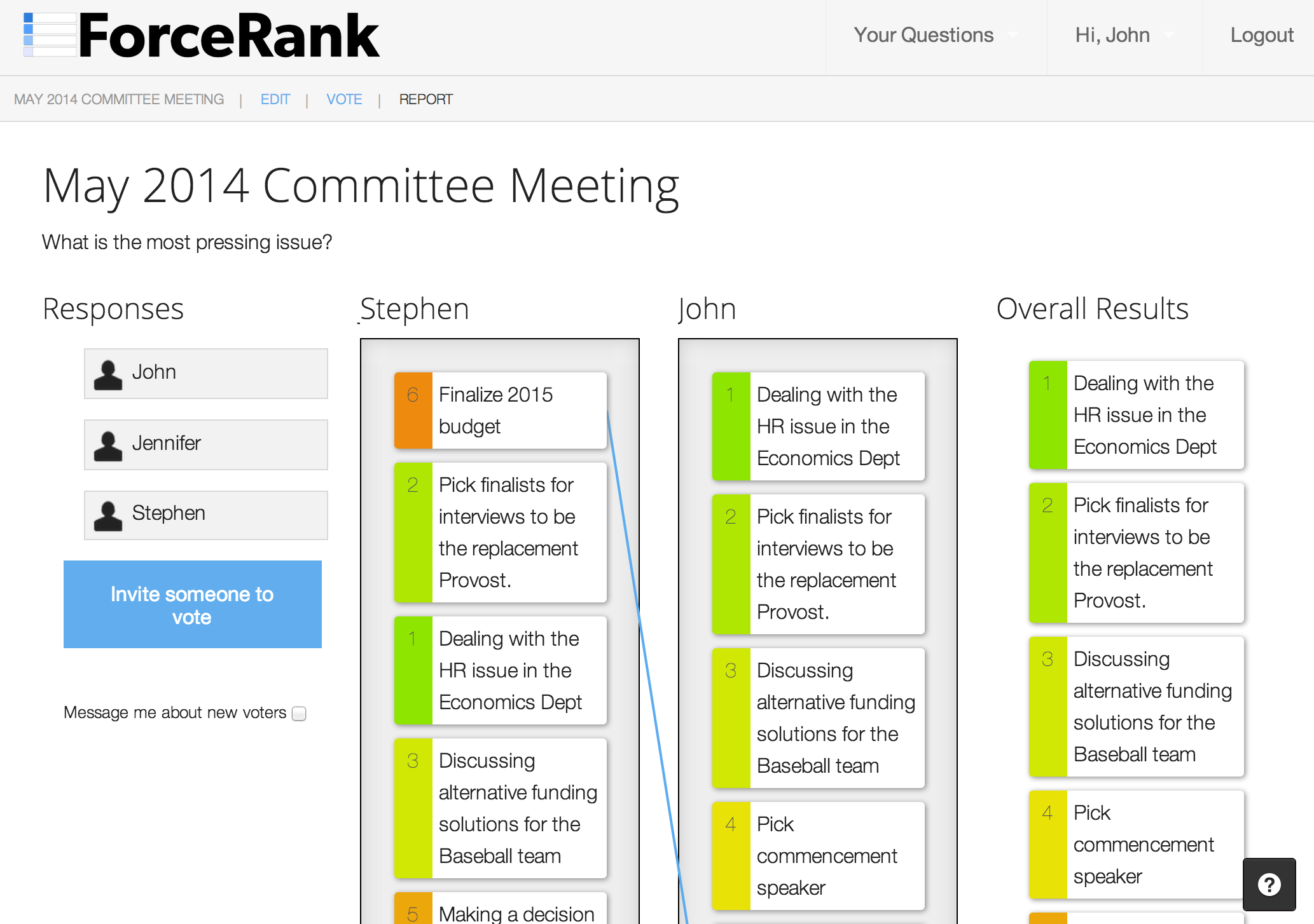 Once everyone has voted, it's time to make a real agenda for the meeting. We can do this by comparing the results.